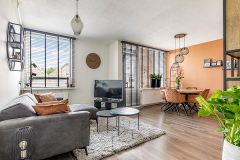 Loop je verder vanuit de woonkamer, dan kom je in de gedeeltelijk open keuken. Deze volledig vernieuwde keuken in landelijke stijl beschikt over diverse inbouwapparaten, zoals een fornuis met inductiekookplaat, afzuigkap, vaatwasser en koel-vriescombinatie. Er is ruimte voor een knusse eettafel – een heerlijke plek om de dag rustig te beginnen met een kop koffie.